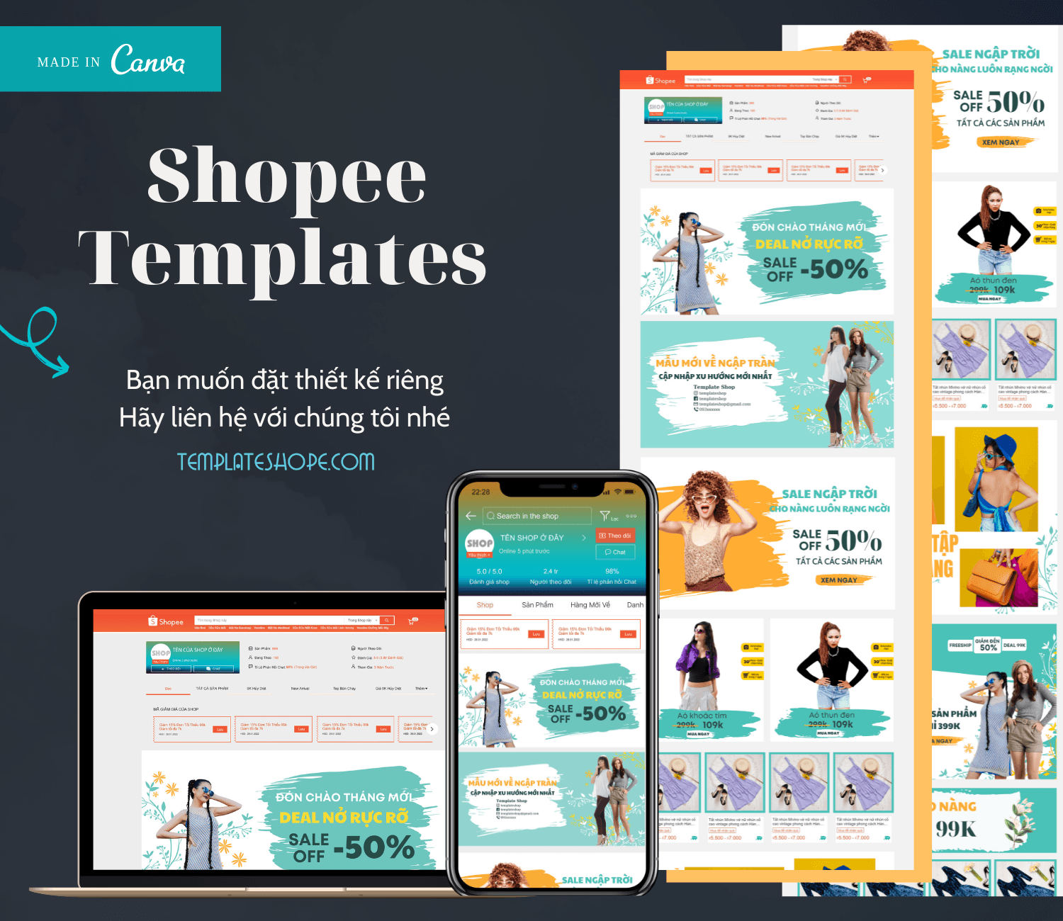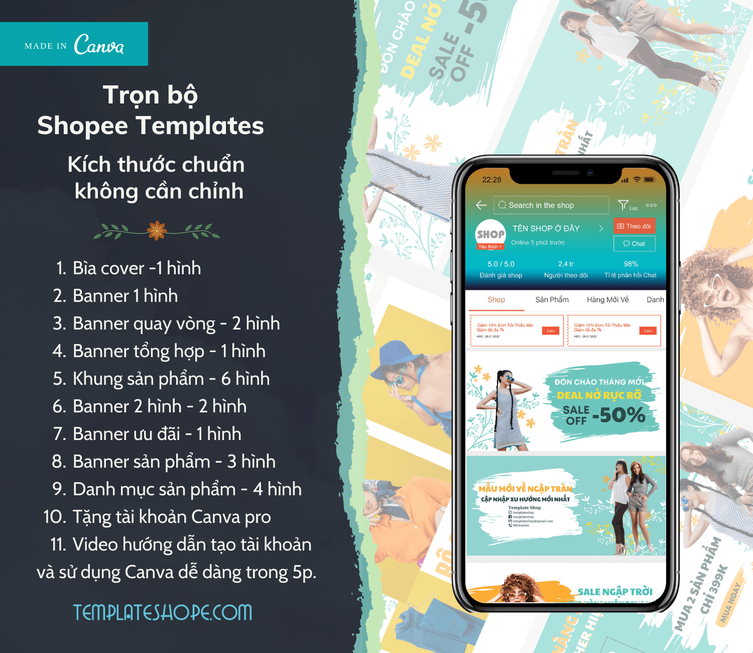 thiết kế template shopee trang trí shop online với canva